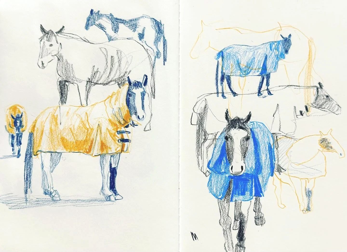 My sketchbooks are my favourite place to draw, to play, to observe from life. They are a place to draw without judgement, to try new things, new materials, make marks, write ideas. They are full of scribbles, memories and tiny moments of joy.