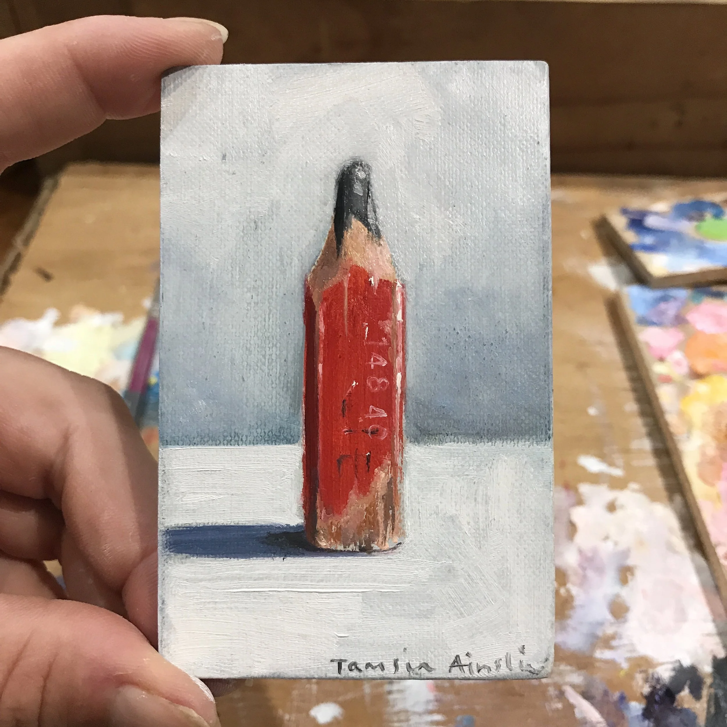 In 2015 I started a project called ‘The tiny pencil project’ where I painted a small oil painting of a pencil, on a piece of vintage book cover, every day for a year. I then auctioned the painting on instagram. The project was huge success and every single painting sold to collectors all over the world. Every painting was painted from life and friends and strangers started collecting pencils for me and I started receiving pencils in the mail from people all over the world and it was such a joyful project to work on. I then went on to do a painting a day of ‘tiny delicious things’ and that too, was huge success. All in all I painted one painting every day for two years straight.